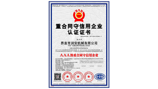重合同守信用認(rèn)證證書公司已通過了ISO9001質(zhì)量管理認(rèn)證、ISO14001環(huán)境管理體系認(rèn)證和ISO45001職業(yè)健康安全管理體系認(rèn)證。為中國儲備糧管理總公司糧機(jī)設(shè)備的A級供應(yīng)商、安徽省高新技術(shù)企業(yè)、擁有阜陽市企業(yè)技術(shù)中心。