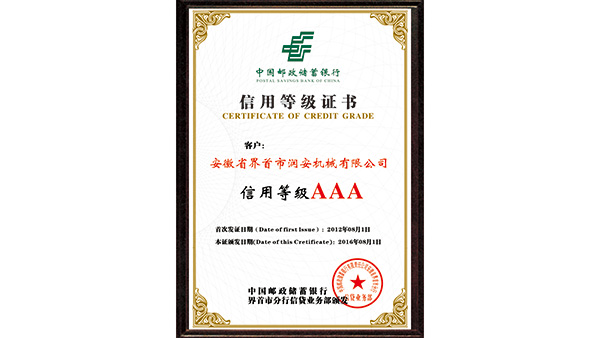 信用等級證書公司已通過了ISO9001質(zhì)量管理認(rèn)證、ISO14001環(huán)境管理體系認(rèn)證和ISO45001職業(yè)健康安全管理體系認(rèn)證。為中國儲備糧管理總公司糧機(jī)設(shè)備的A級供應(yīng)商、安徽省高新技術(shù)企業(yè)、擁有阜陽市企業(yè)技術(shù)中心。