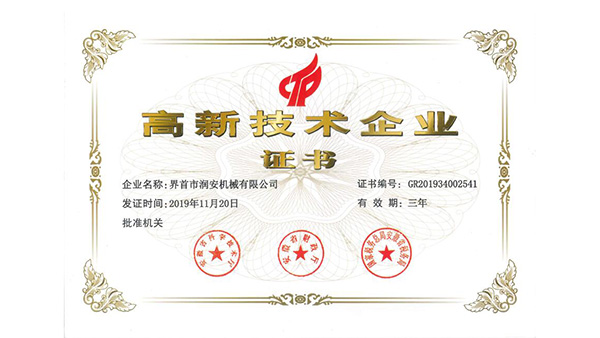 高新技術(shù)企業(yè)證書公司已通過了ISO9001質(zhì)量管理認(rèn)證、ISO14001環(huán)境管理體系認(rèn)證和ISO45001職業(yè)健康安全管理體系認(rèn)證。為中國儲備糧管理總公司糧機(jī)設(shè)備的A級供應(yīng)商、安徽省高新技術(shù)企業(yè)、擁有阜陽市企業(yè)技術(shù)中心。